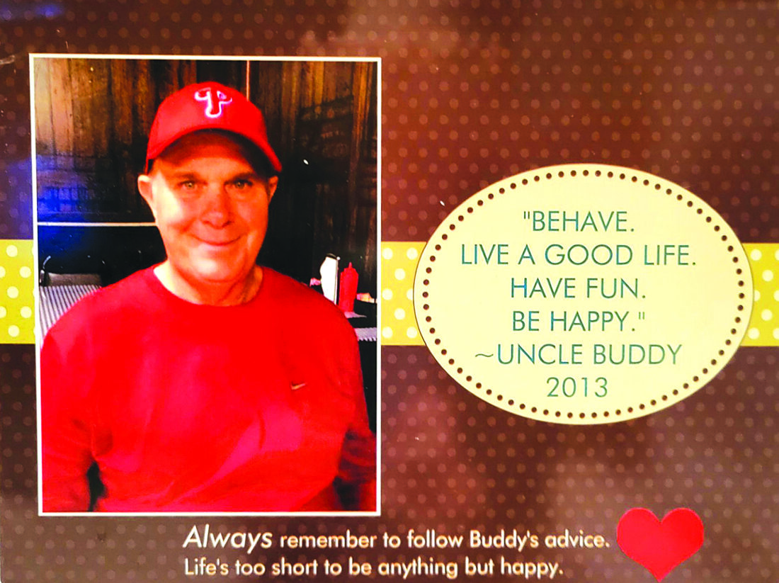 Buddy has one goal in life-to make you smile. He is always eager to please and looks for ways to make you happy. After his first week in the group home, some of the family met at a local restaurant to see him and hear from him about his new home. His niece, Brooke, asked him for some advice about life. Here is his response: “Behave. Live a good life. Have fun. Be happy.”