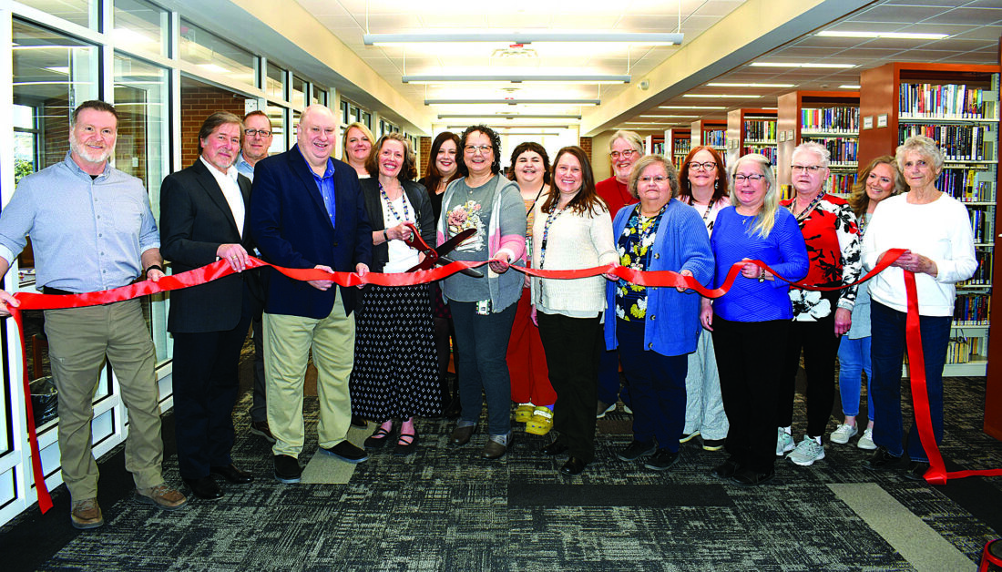 The Mifflin County Library in Lewistown reopened March 3, 2025 after completion of phase one of the renovation project. Pictured are, from left, Mifflin County Commissioner Noah Wise, Mifflin County Commissioner Robert Postal, Plant Manager Lonnie Griffith, Mifflin County Commissioner Kevin Kodish, Board Member Jess Nail, Mifflin County Library Executive Director Susan Miriello, Board President Roxie Garrett, Assistant Director Shelly Sweigart, Erin Ross, Children's Librarian Kelly Rodenbaugh, Board Member Tim Dunmire, Mary Rieffannacht, Cheryl Yarrish, Kelly Phillips, Shirley Fetters, Chris Wilt and Board Member Mary Ann Stratton. (Submitted photo)