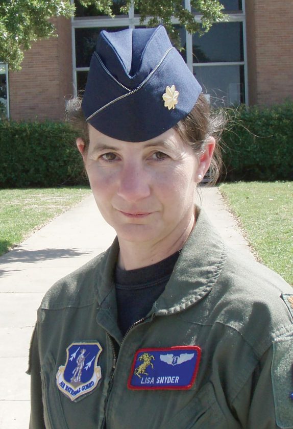 The Air National Guard is both a federal reserve force and a state militia, part of the United States National Guard but, when activated, part of the U.S. Air Force. Snyder says she lives by the core values of that branch: integrity first, service before self, excellence in all you do.