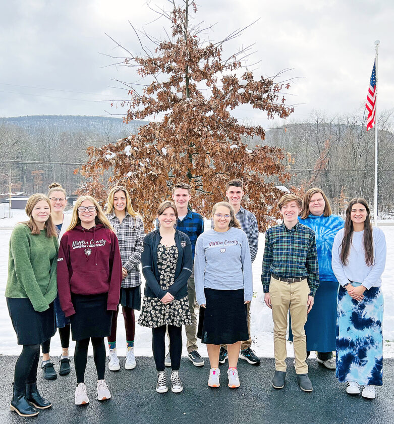 Eleven students from Mifflin County Christian Academy will sing this weekend in the All-State Choir in Lebanon. Students are, from left, front, Lilly Todd, Madisyn Baumgardner, Samantha Mitchell, Sarah Peachey, Jude Gisewhit and Cora Gentzel; back, Megan Weuant, Elle H, Malachi Angney, Elijah Angney and Alexys Albert.