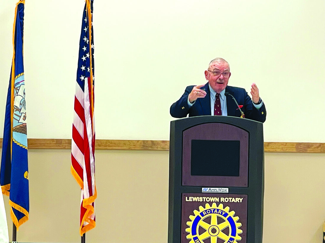 Rotary Club President William Campbell, and other Rotarians warmly welcomed keynote speaker, retired Col. Vincent J. Tedesco Jr.