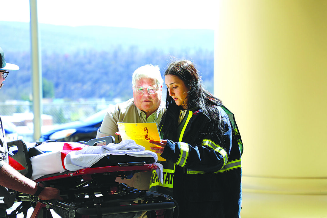 Students await their turn to transport their simulated patients on Saturday at the Mifflin County High School in Highland Park.