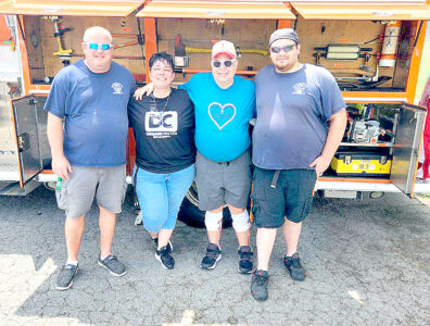 Cheryl Dews of the Dream Center (second from left) is surrounded by firefighters Bob Mock (from left), Tony Dudick and Jason Wileman at last year’s Overdose Awareness event.