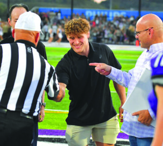 Submitted photo Trent Hidlay walks across Marcel Paper Field in front of his alma mater for recognition on Friday Night.