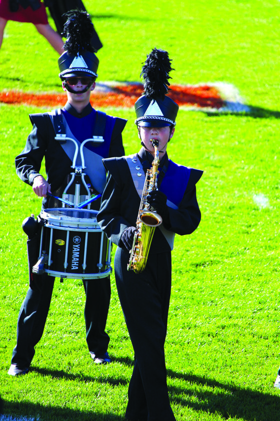 - Photo courtesy of MIFFLIN COUNTY SCHOOL DISTRICT Marching band members Nolan Wade (left) on Alto Saxophone and Dylan Noerr on Snare Drum perform.