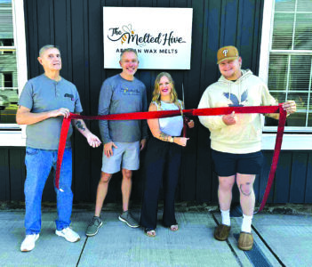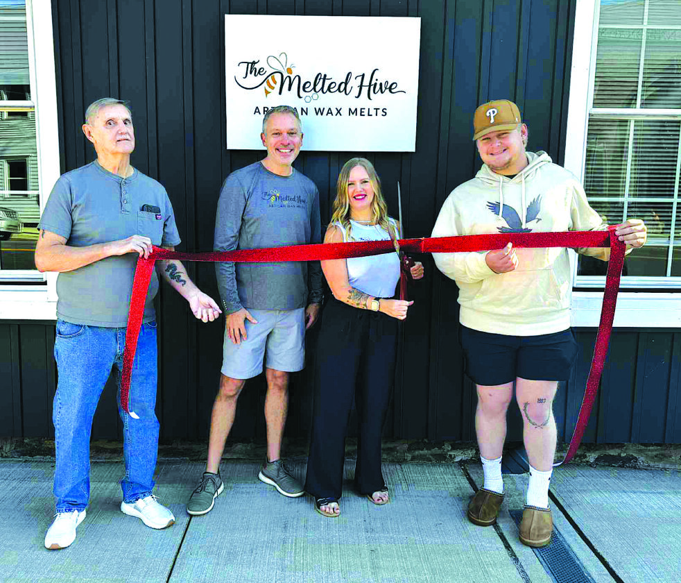 - Submitted photo From left, William Cramer, Jr., Dan Ryan, Owner Jessica Cramer, and Landon Black celebrate the grand opening of The Melted Hive.