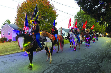 Riders from Rocky Ridge Ranch make their way down the streets of McVeytown during the Halloween parade.