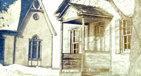 Photo courtesy AURAND SCHOOL COLLECTION The Aurand School (at right), Ellen Chapel Church (at left), circa 1920.