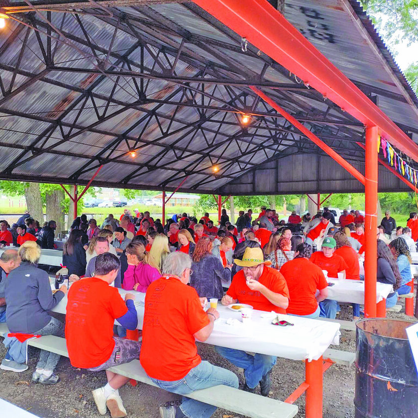 Submitted photo Volunteers at a previous year’s annual Day of Caring enjoy breakfast at Kishacoquillas Park in Lewistown.