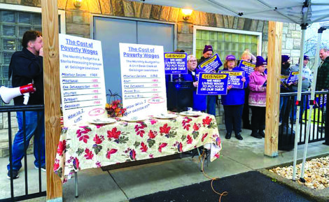 Healthcare workers at Geisinger-Lewistown Hospital gathered for the ‘Thanksgiving Rally for Living Wages to Put Food on Our Table’ on Tuesday at the United Steelworkers Hall, 519 Electric Ave., in Lewistown.