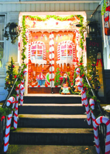 2. Don and Patty Henry: 24 Franklin Ave. The steps are lined with candy canes, which lead up to a gingerbread house mural, garland, candy-themed ornaments and little gingerbread people.