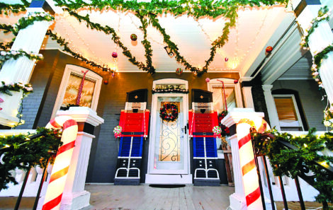 1. Dawn and Jeremy Croissette: 123 E. Third St. Large nutcrackers made from window shutters are holding lollipops, and vintage candy canes flank the front porch entrance.