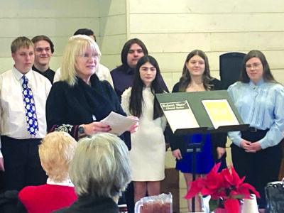 Mifflin County High School Choral Director Vicki Fensterbush explained the history behind several Christmas songs performed by the student group Cantare at the Dec. 4 meeting of the Mifflin County Chapter of the PA Association of School Retirees.