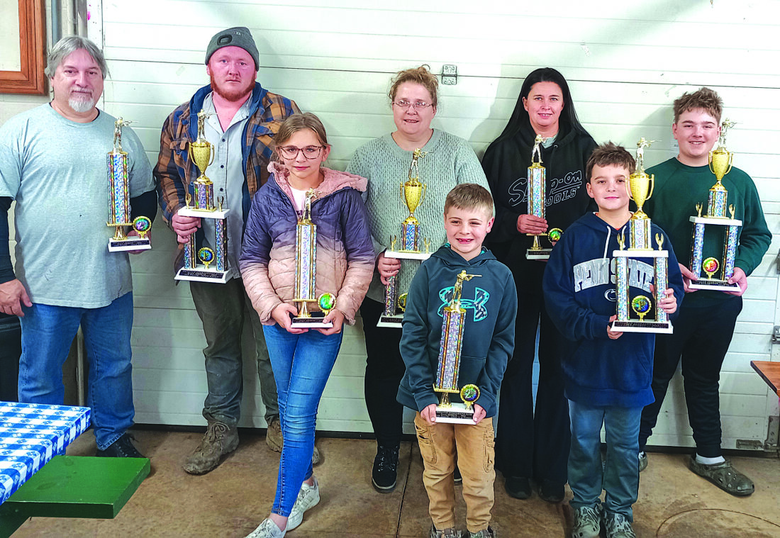 The Decatur Sportsmen’s Association presented awards to the 2025 fall shotgun shoots trophy winners. Trophies were awarded by points-accumulation over a 12-week period. Pictured are, from left, front, Sophie Wray, 2nd Place, Ages 12-15; James Forsythe, 2nd Place, Ages 11 and under and Gavin Spigelmyer, 1st Place, Ages 11 and under; back, Don Singer, 2nd Place, Open Relay; Bill Kreider, 1st Place, Open Relay; Brittany Harris, 1st Place, Ladies Relay; Melissa Knepp, 2nd Place, Ladies Relay and Lucas Spigelmyer, 1st Place, Ages 12-15.