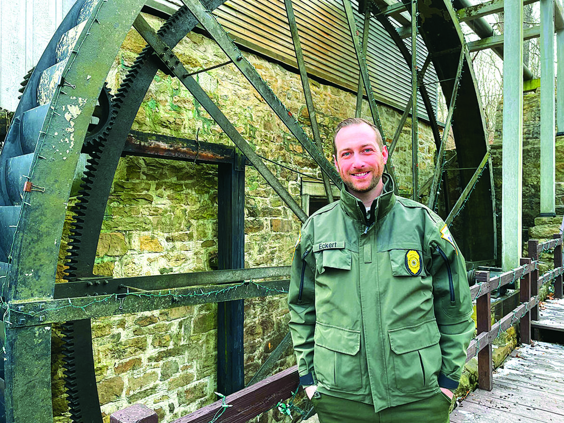 His path to this role reflects a steady climb through Pennsylvania’s state park system, shaped by both education and hands-on experience. A native of Economy in Beaver County, Eckert grew up enjoying hiking, birdwatching, and identifying plants and animals — interests that naturally aligned with a future in conservation. He also shares his home life with his cat, Leo, a quieter companion to his outdoor pursuits.