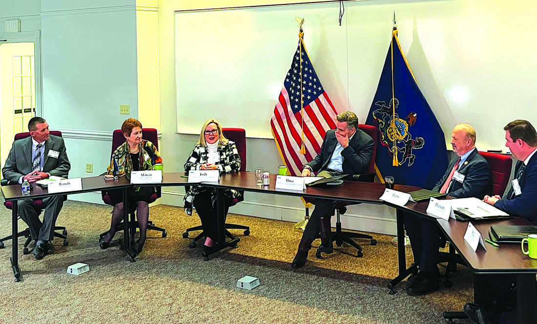 According to a press release from the Juniata Valley Bank, the bank hosted a Pennsylvania Bankers Roundtable with Sen. Dave McCormick to discuss the key role that state banks play as ‘anchors of economic opportunity.' The release stated that bankers voiced concerns about loopholes in the Stablecoin/Genius Act legislation, among other concerns, at the roundtable featuring 18 community bank CEOs. Pictured are, from left, Randy Black, CEO of First Community Financial Corp; Marcie Barber, CEO of Juniata Valley Bank; Sen. Judy Ward; Sen. McCormick; Rep. Perry Stambaugh; and Duncan Campbell, president of the Pennsylvania Bankers Association.