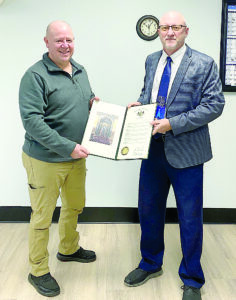 John Breneman, a Lewistown constituent outreach specialist for state Sen. Judy Ward, R-Blair, presented Bubb with a certificate recognizing his dedicated service following his retirement in December 2025.