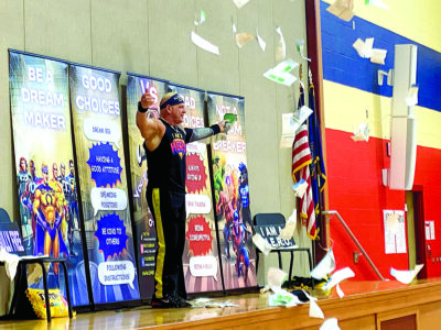 Juniata Elementary School held an Omegaman & Friends assembly for its students on Wednesday as part of the Positive Behavioral Interventions and Supports program celebration.