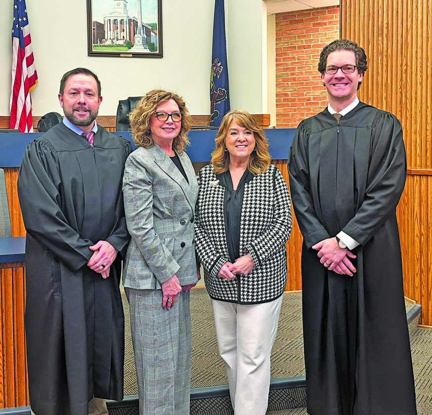 Clerk of Orphans’ Court, Register of Wills and Recorder of Deeds Ellen L. Amspacker, second from left, and 1st Deputy Kathy D. Ritter, third from left, are pictured with President Judge Aaron L. Gingrich, left, and Judge Jonathan W. Reed. Missing are 1st Deputy Tracy E. Ferguson and 2nd Deputy Dan’Elle R. Steele.