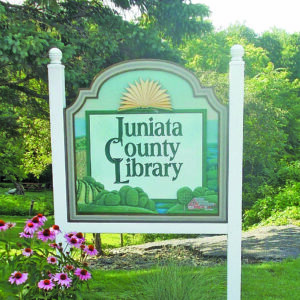 The sign outside the Juniata County Library welcomes patrons.