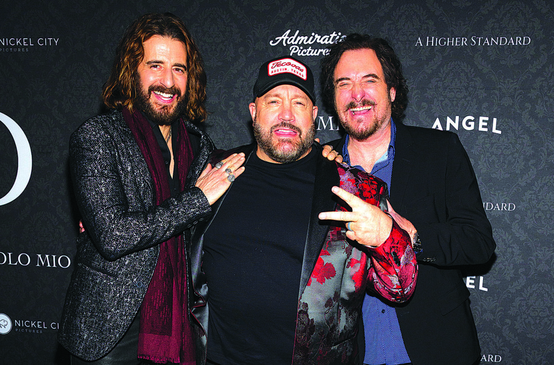 Jonathan Roumie, from left, Kevin James, and Kim Coates attend the premiere of ‘Solo Mio’ at Regal Times Square on Jan. 27, in New York.