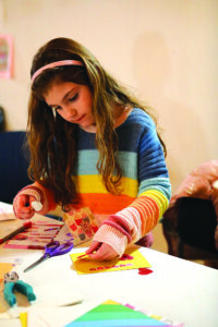 Harper Haines, 6, of Lewistown, creates a Valentine’s card at East End Coffee Co. in Lewistown during the First Friday celebration.