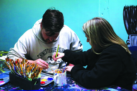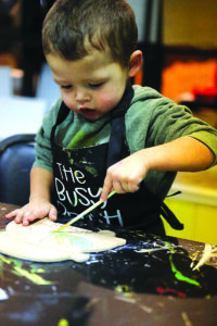 Vanh Snook, 2, of Milroy, paints a wooden decoration Friday evening at the Busy Brush in Lewistown during the First Friday celebration.