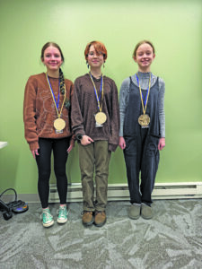 Mifflin County Middle School students Adalyn Lutz, from left, Lennin Ruble and Mia Clark compete at the recent Tuscarora Intermediate Unit 11’s Annual Reading Competition.