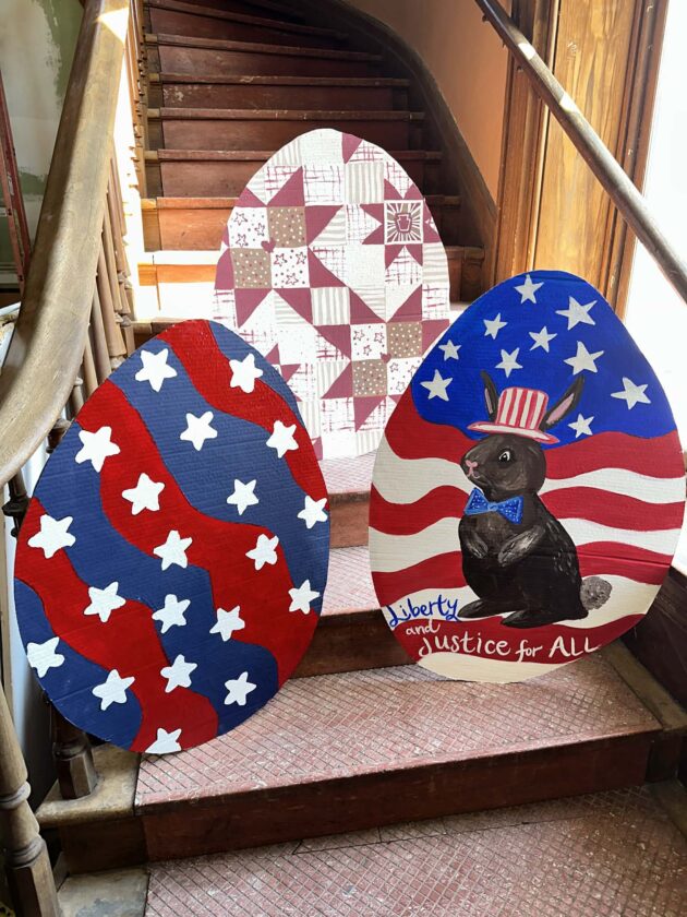 Submitted photo Pictured are a variety of cardboard eggs that are being featured in the Downtown Discovery Easter Egg Hunt.