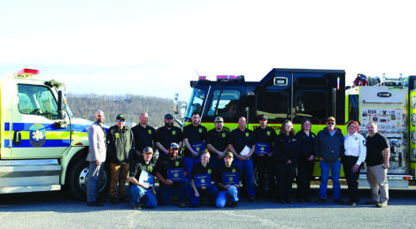 Pictured are award winners, front from left, firefighters Kadyn McClellan, Gerson Arnold, Misty Hampton, Reed Earnest; back from left, Pennsylvania Rep. David Rowe, Fire Chief Chris Treaster, firefighter Paul M. Yocum, Captain Hunter Snook, firefighters Shannon Zaluski, Brandon Eby, Assistant Chief Paul Liddick Jr., firefighter Travis Panunzio, EMT Amy Kintzel, Paramedic Harley Bilger, John Hagans, Deputy Chief Patricia Peters, and Seven Mountains EMS Council Director Harold Mast.