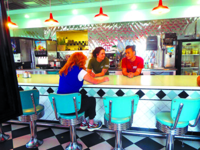 Gubernatorial candidate Republican Stacy Garrity chats with John and Joann Sipe during a campaign stop at Bing’s Diner Wednesday afternoon.
