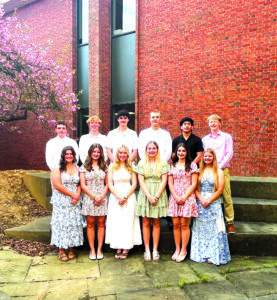 This year’s May Day Queen candidates and their escorts include front row from left: Sophia Smith, Leni Kopf, Hope Kehler, Miley Hack, Addison Rutherford and Kalynn Brown; back row: Camden Bargo, Colten Rowles, Arthur Hazard, Ryder Smith, Anthony Maradiaga and Daylyn Kennedy.