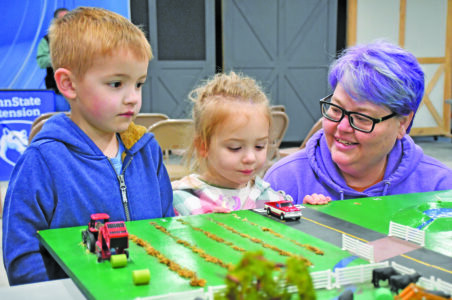 Jamie Lewis, of Mifflintown, far right, along with Lewis, age 5, and Kendel, 3, check out a display at Juniata County Rural Safety Day, hosted by Penn State Extension, on Saturday at the Juniata County Fairgrounds, in Port Royal. The event featured demonstrations and activities that taught safe practices for all ages.