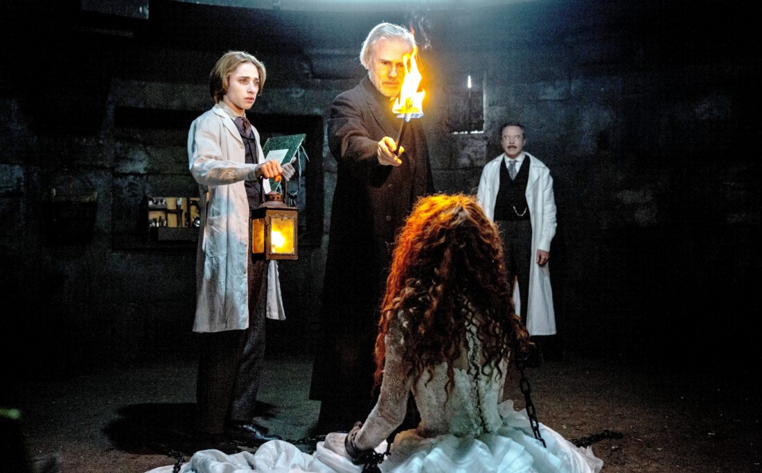 This image released by Vertical Entertainment shows Christoph Waltz, background center, in a scene from "Dracula." (Vertical Entertainment via AP)