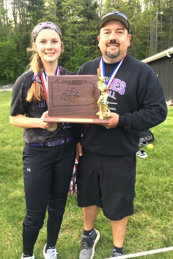 Submitted photo Ray Hoppel was a varsity assistant coach for the Mifflin County softball team in 2019 when the Huskies captured the District 6 crown. He is shown here with his daughter, Gianna, who was a member of the team.