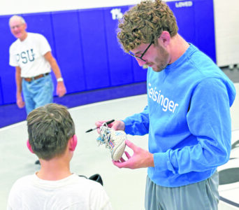 LEWISTOWN — From the mat to talking to Mifflin County High School wrestlers during a clinic, Mitchell Mesenbrink dominates his opponents the same way he instructs young wrestlers — one takedown at a time.