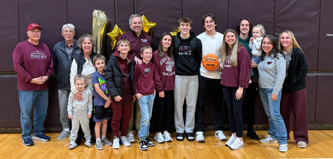 Submitted photo Last Tuesday, East Juniata’s Wrett Smith scored his 1,000th career point during a 50-39 win against Belleville Christian. Wrett and his father, Andy, became the first father/son duo to both score 1,000 points at East Juniata.
