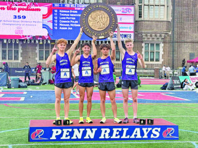 PHILADELPHIA — Carter Smith walked off historic Franklin Field in Philadelphia with a piece of history — literally — as he carried a strip of the broken finish-line tape over his shoulder, the baton still in his grasp after running the anchor leg that sealed a Penn Relays championship for Mifflin County High School.