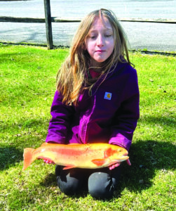 Haley Ishman, 10, of Port Royal, shows her catch during Mentored Youth Trout Day on Saturday, March 28 at Haldeman Park in Thompsontown. The statewide event was open to youth anglers ages 15 and under and their licensed adult mentors on hundreds of waters in all 67 counties.
